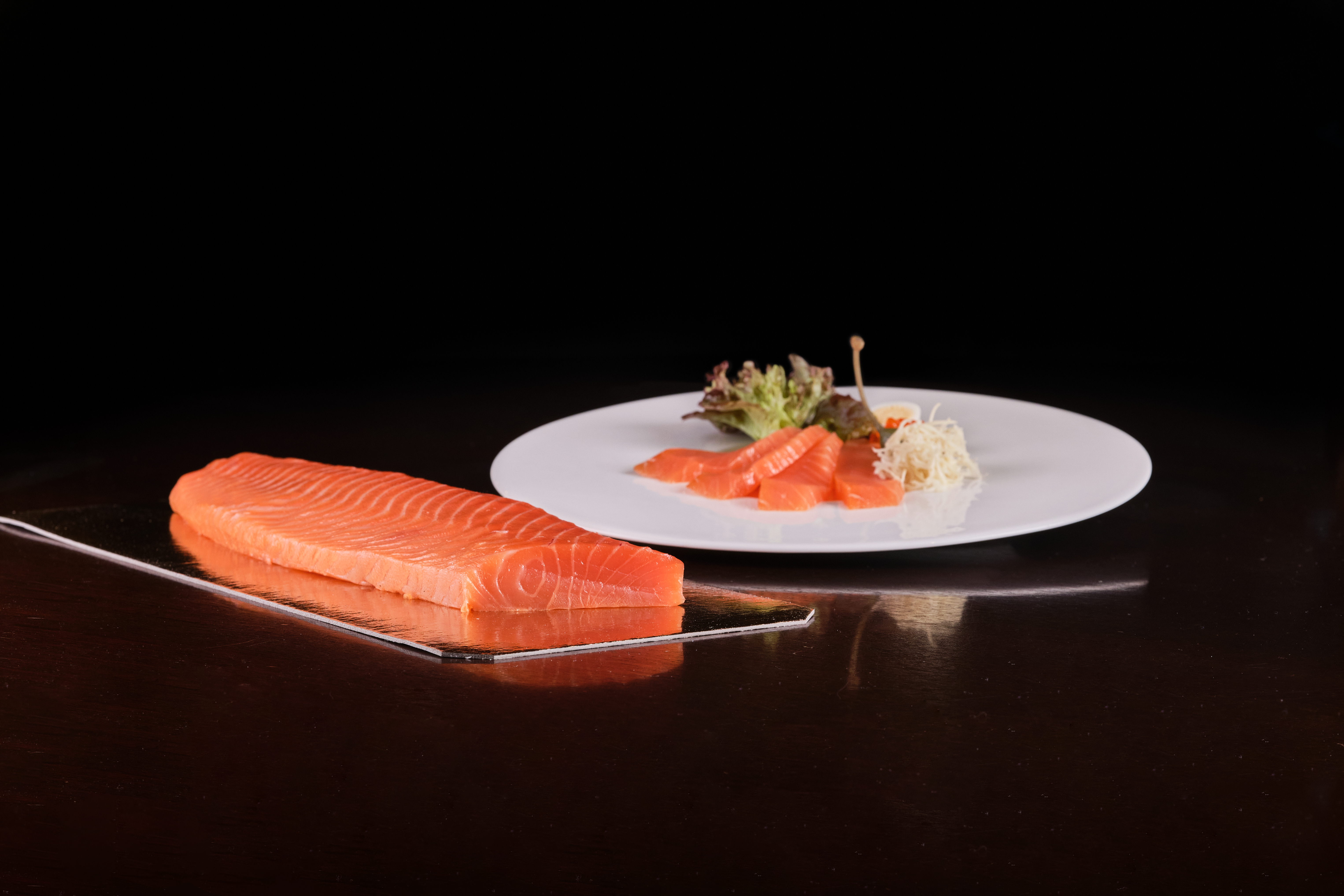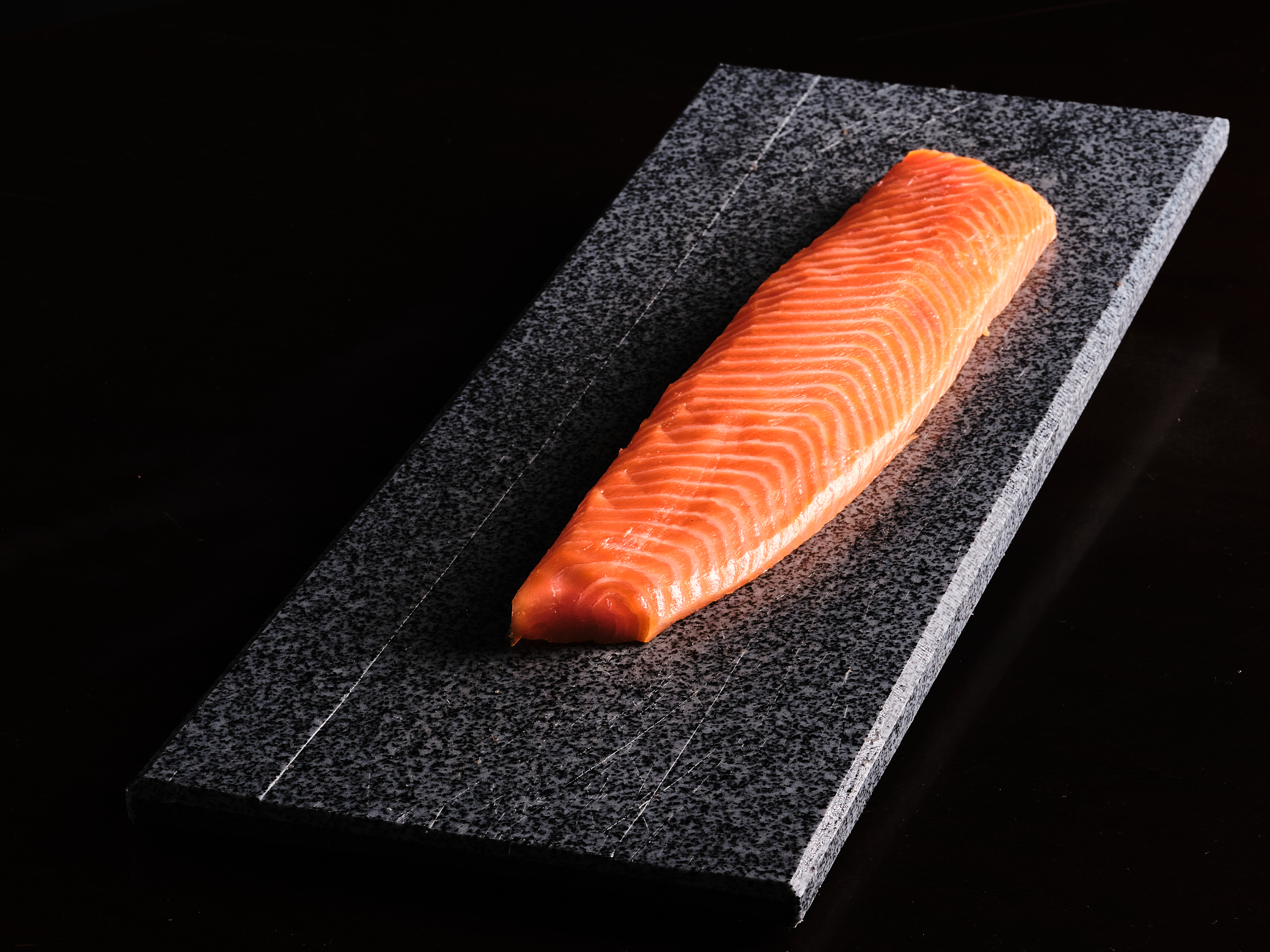 Menge: ca. 500g. Rückenfilet vom schottischen Label Rouge Lachs ohne Haut mild gesalzen. 12 Stunden im Buchenrauch im Steinofen kalt geräuchert. Einzigartig. MHD: 2 Wochen.