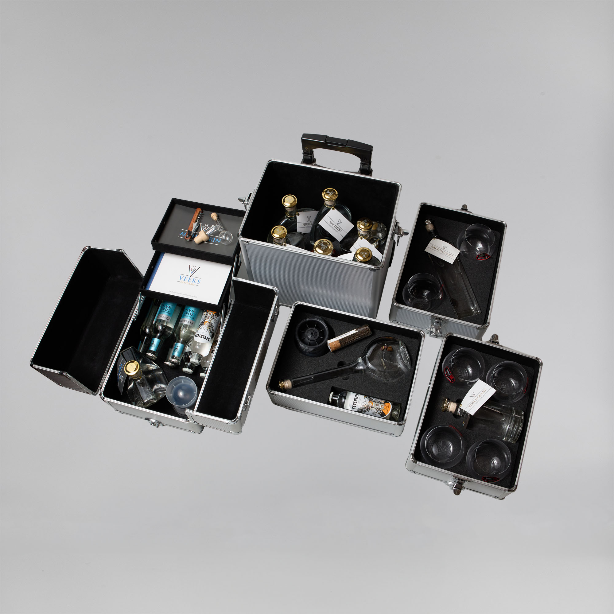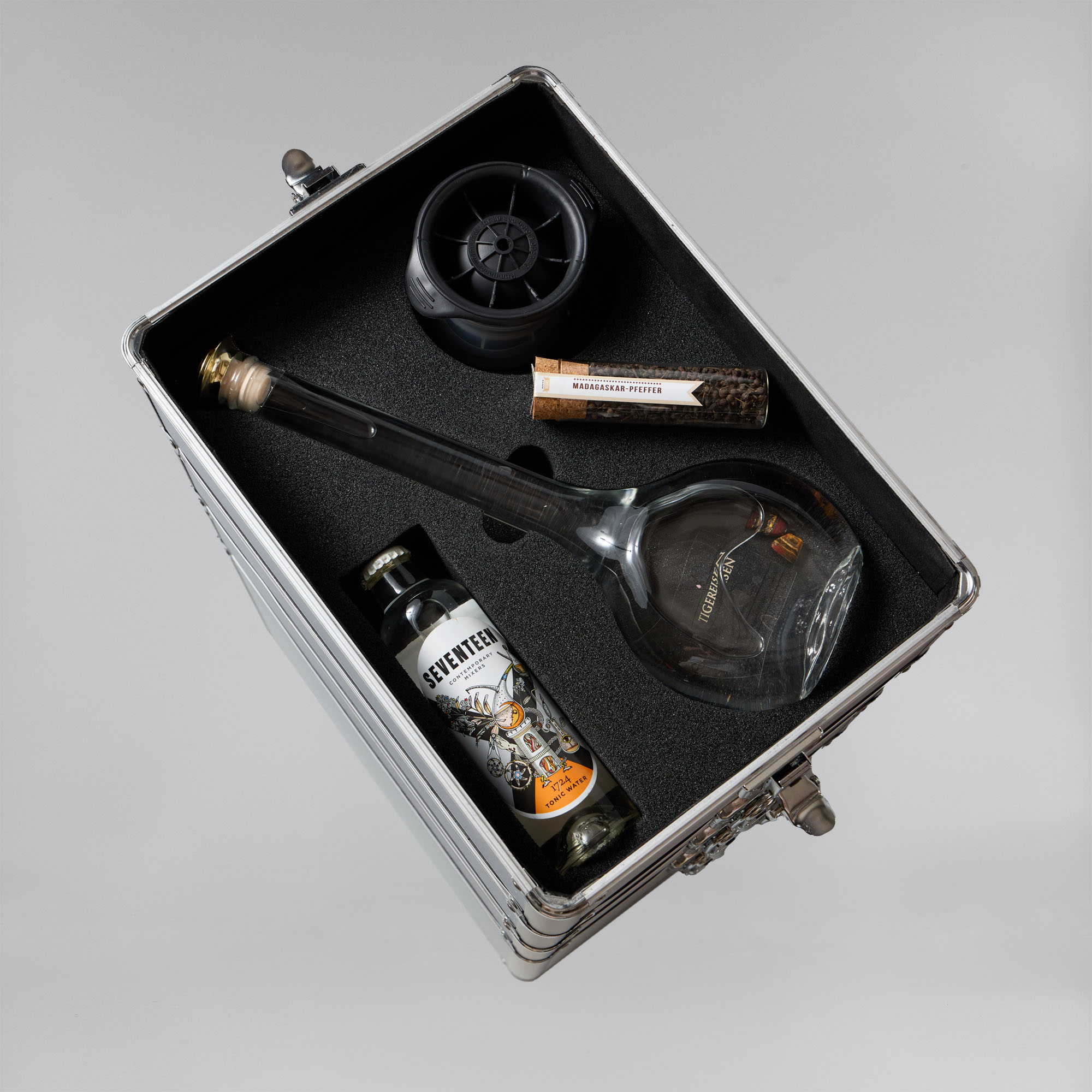Einzigartig in dem Designe. Bestückt mit 10 flüssigen Juwelen. 6 O-Riedel Gläsern. 2 xxl Eisballmaker.
